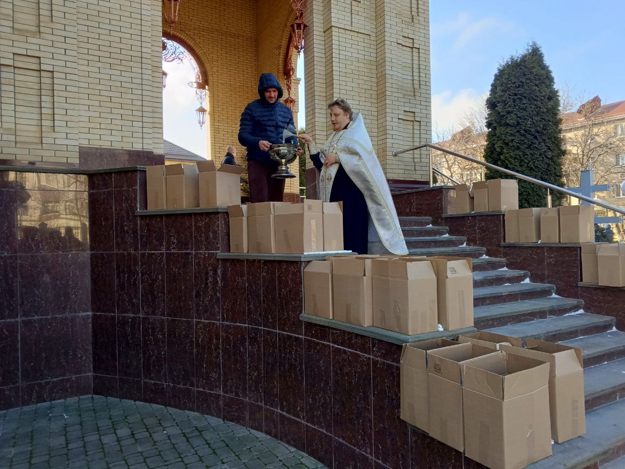Ребята поддерживали настоятеля храма, отца Александра, сортировали святую воду, участвовали в её погрузке, а затем доставили её в дом престарелых «Гармония» и детский дом «Надежда».